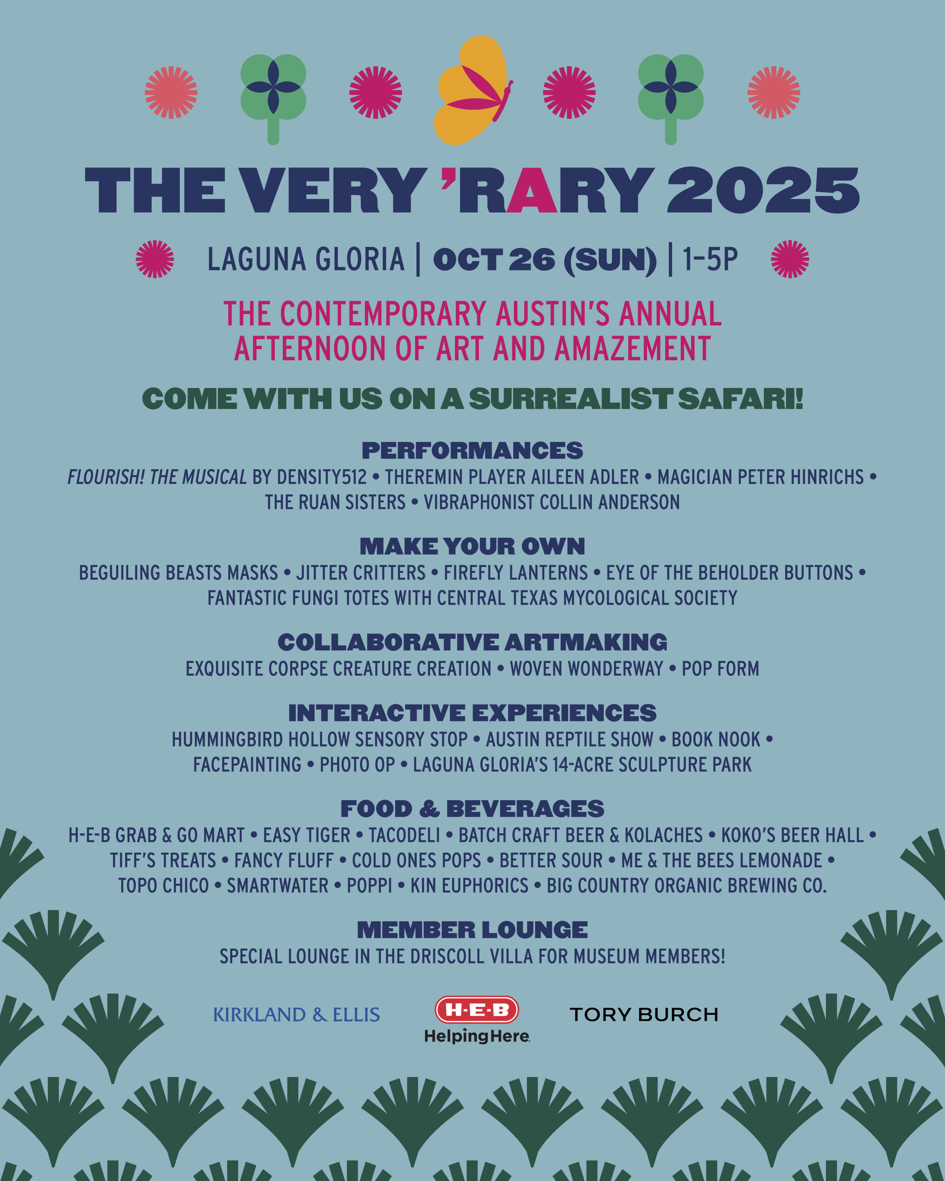 Every year, The Very 'Rary welcomes more than 1000 kids and their families to Laguna Gloria for artful adventures that inspire Austin’s youth to explore their creativity. Help us make the day more magical and get free admission! Learn more about volunteering.